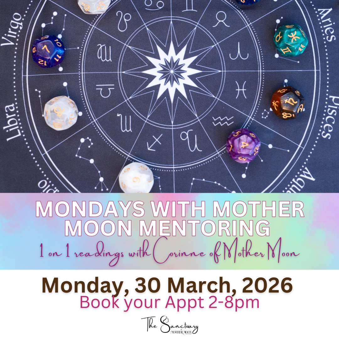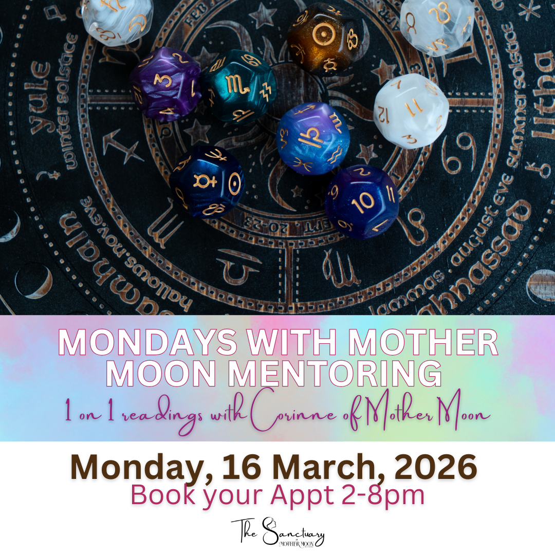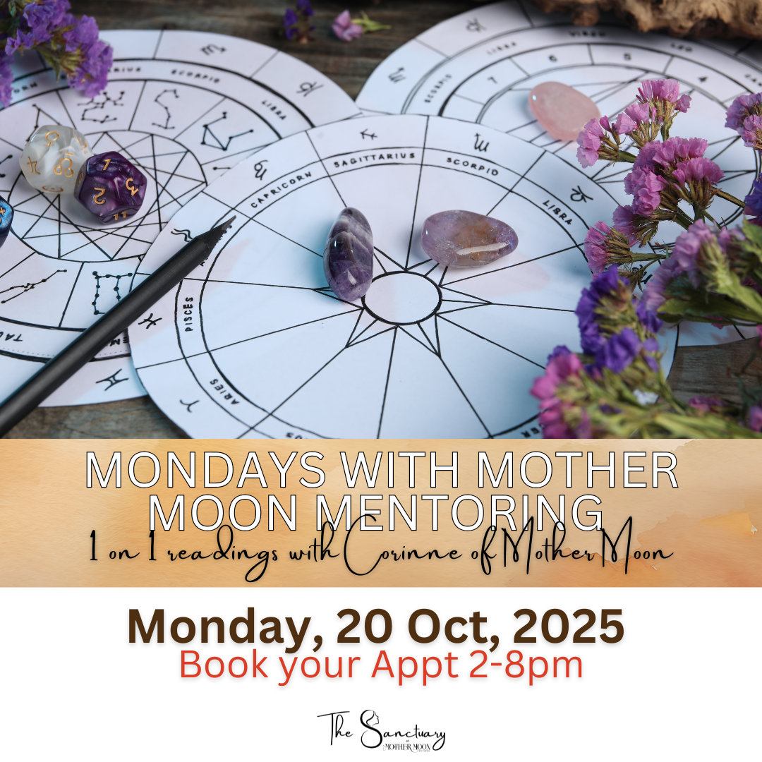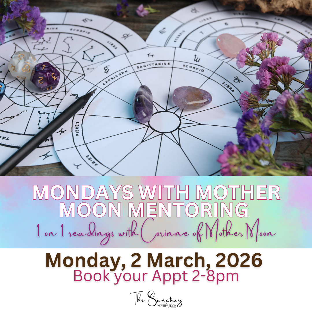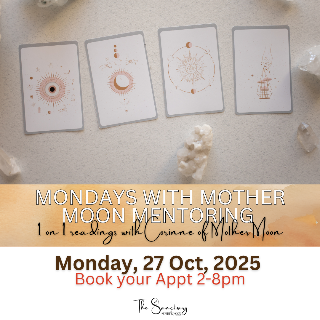 w/Corinne of Mother Moon Mentoring Mondays are the MOON's day so why not make it the Moonologist's day at The Sanctuary?! Corinne is now booking Astrology, Transit, and Oracle Card Intuitive readings on Mondays 2-8pm. Sit in the Red Tent and let her bring you guidance to the questions you have been pondering lately. With pricing friendly for every pocket, we can make Monday your favorite day of the week!