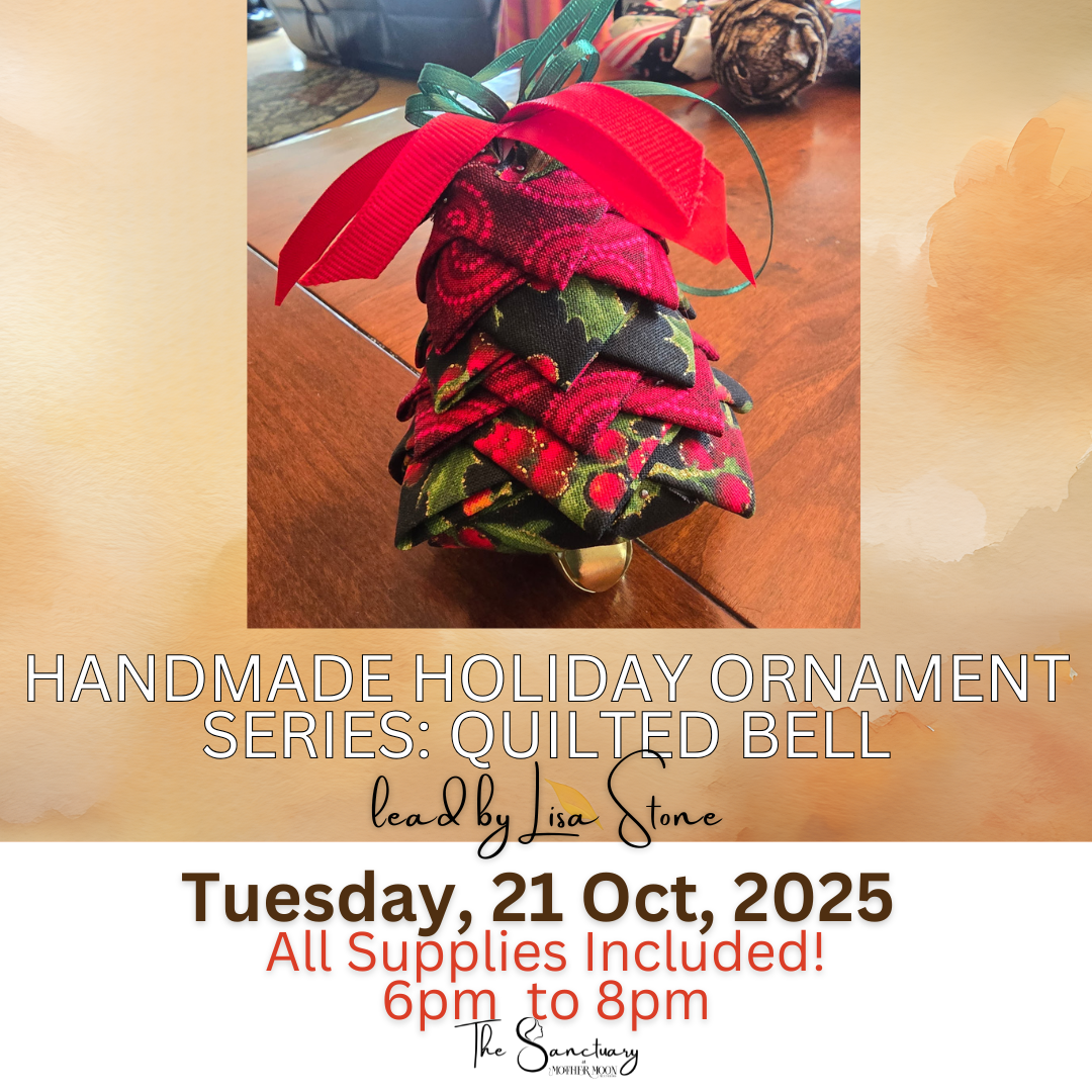 Join Lisa for a cozy, creative evening of holiday crafting! In this hands-on workshop, you’ll learn how to make a charming quilted bell ornament—perfect for your tree or as a heartfelt gift. Lisa will guide you step-by-step through the process, sharing tips for selecting colors, folding fabric, and creating the classic quilted pattern without any sewing required.